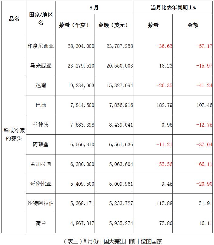 8月大蒜出口下滑明顯,9月能否突圍?