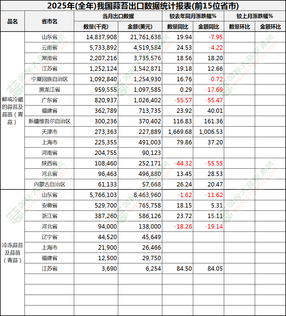 2025年全年蒜苔出口數(shù)據(jù)(按省市)