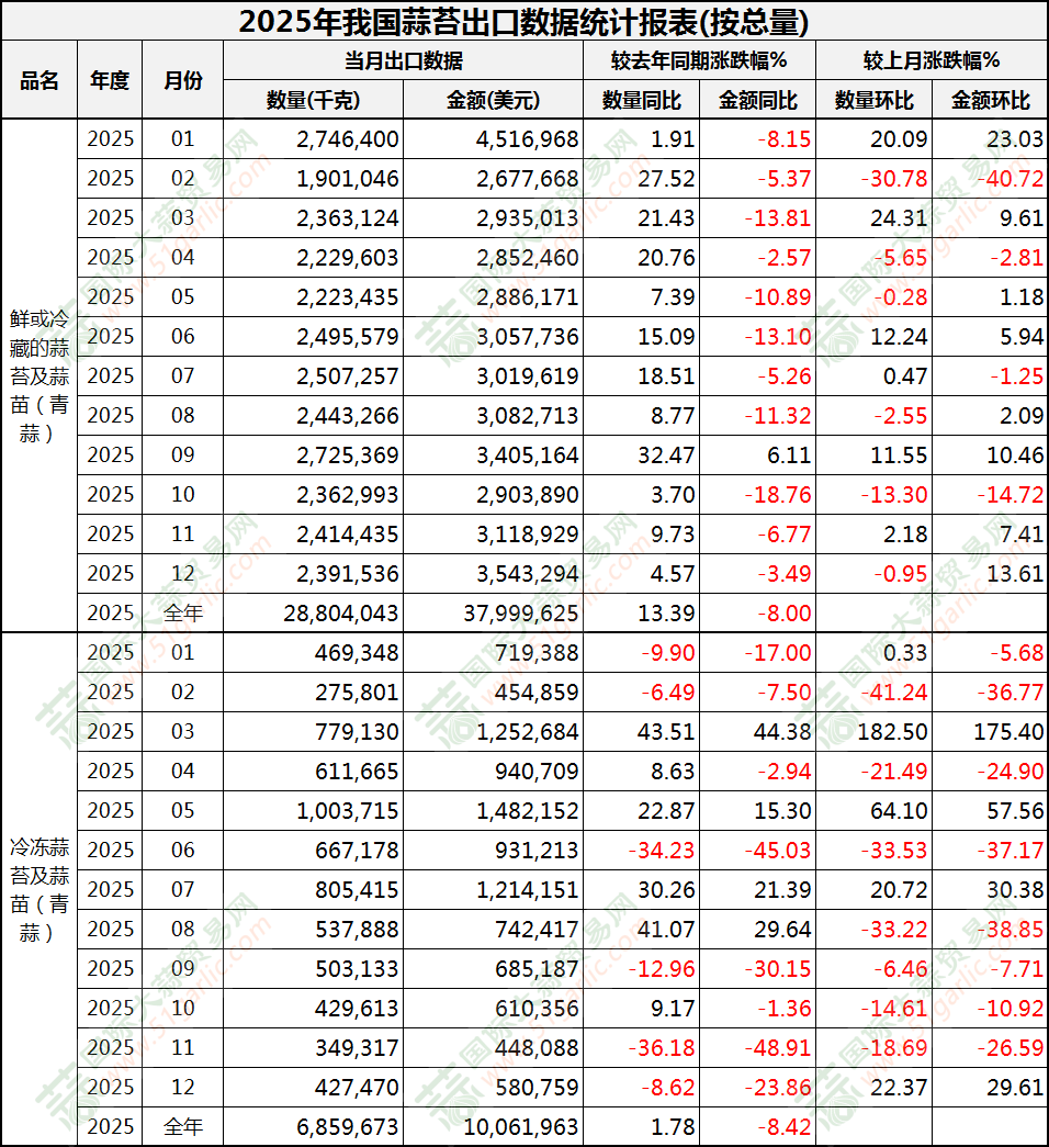 2025年全年蒜苔出口數(shù)據(jù)(按總量)