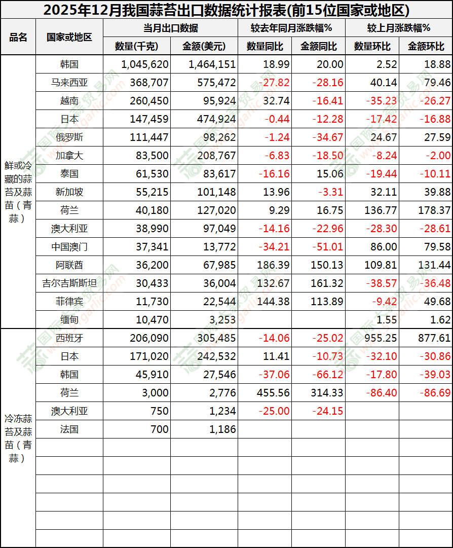 2025年12月蒜苔出口數(shù)據(jù)(按國(guó)家)
