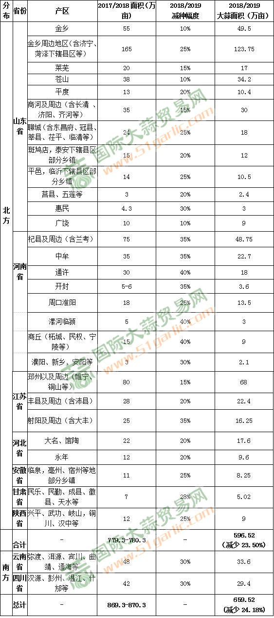 2018-2019年度全國(guó)大蒜種植面積統(tǒng)計(jì)