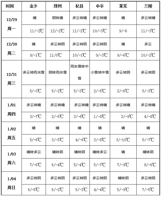 本周(12月29日至1月4日),金鄉(xiāng)、邳州、杞縣等大蒜主產(chǎn)區(qū)受冷空氣影響,天氣將出現(xiàn)冷暖大反轉(zhuǎn),局部地區(qū)周內(nèi)有降水。前期(12月29日至12月30日)以晴或多云為主,氣溫多在-2℃至12℃,整體偏暖;12月31日天氣波動(dòng)明顯,多地出現(xiàn)雨夾雪、小雪轉(zhuǎn)中雪等降水天氣,氣溫驟降至-5℃至5℃;元旦過(guò)后,產(chǎn)區(qū)氣溫逐步回升,天氣以晴或多云為主。