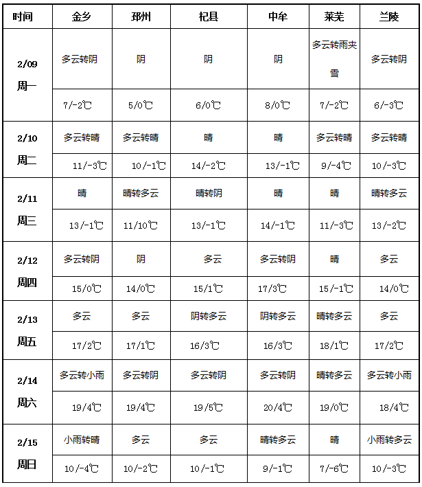 未來(lái)一周(2月9日至15日),國(guó)內(nèi)大蒜主產(chǎn)區(qū)天氣呈波動(dòng)變化,氣溫整體呈 “先升后降” 走勢(shì),降水過(guò)程較為零散。前期萊蕪出現(xiàn)雨夾雪,隨后各地轉(zhuǎn)晴升溫,氣溫逐步攀升至 14-18℃的階段性高點(diǎn);后期金鄉(xiāng)、蘭陵等地出現(xiàn)小雨,之后氣溫明顯回落,最低溫跌至 - 6℃到 - 1℃,天氣由暖轉(zhuǎn)冷。其余時(shí)段以晴好、多云為主,無(wú)大范圍降水。